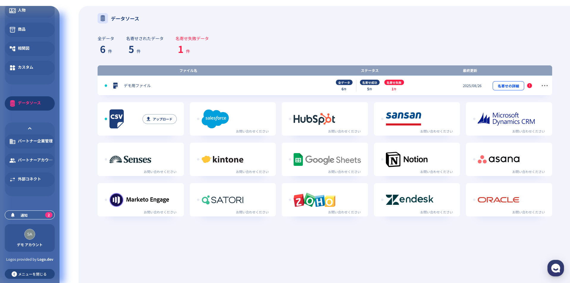 また、自社のCRMやSFAなどの顧客データベースと連携をすることができ、自社の顧客情報の名寄せや自社情報を使った企業検索、パートナーとの共同リスト管理なども行っていただけます。