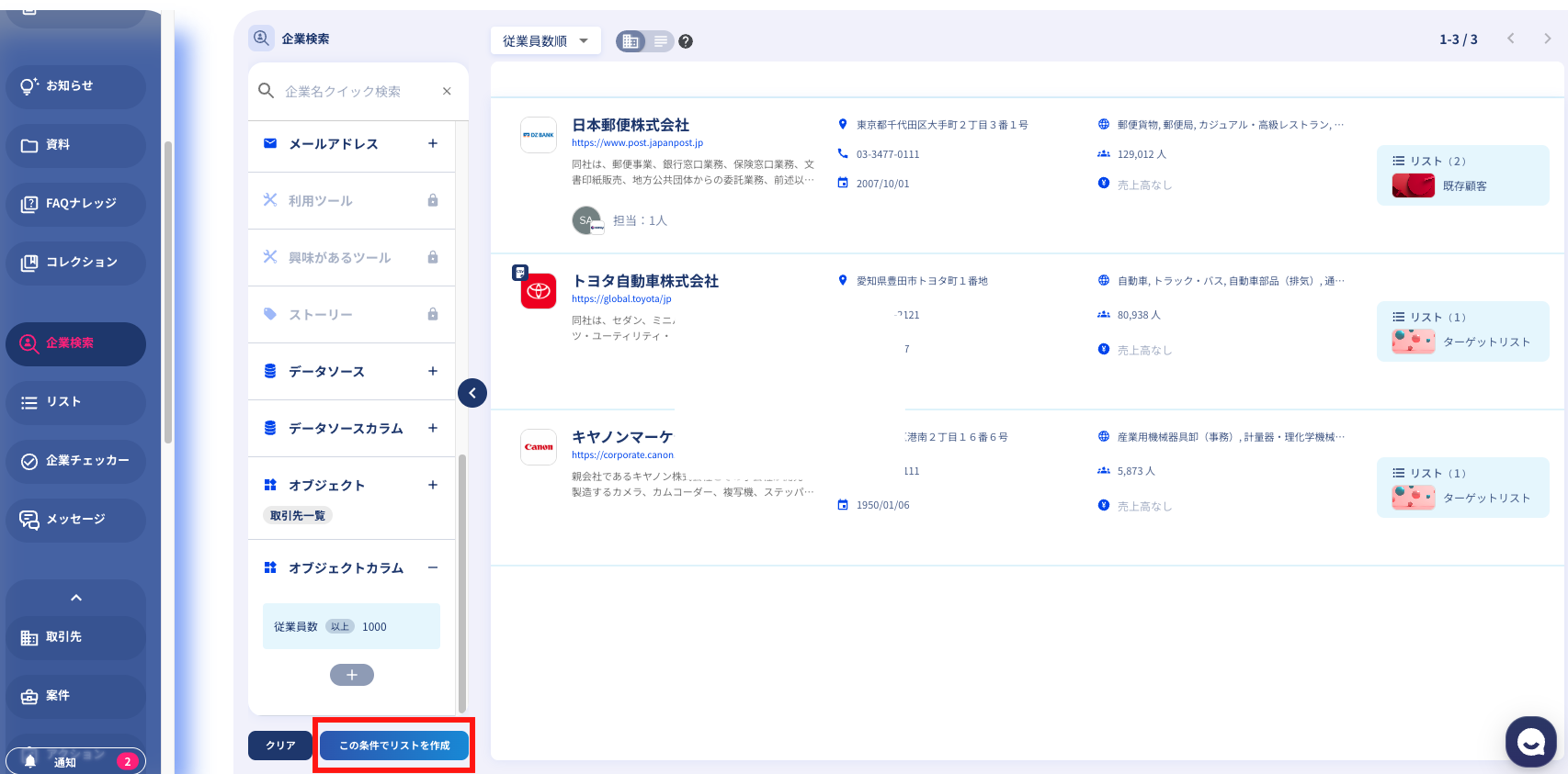 3-2. 社内・パートナーの情報を使った企業検索(顧客/案件管理機能を利用)