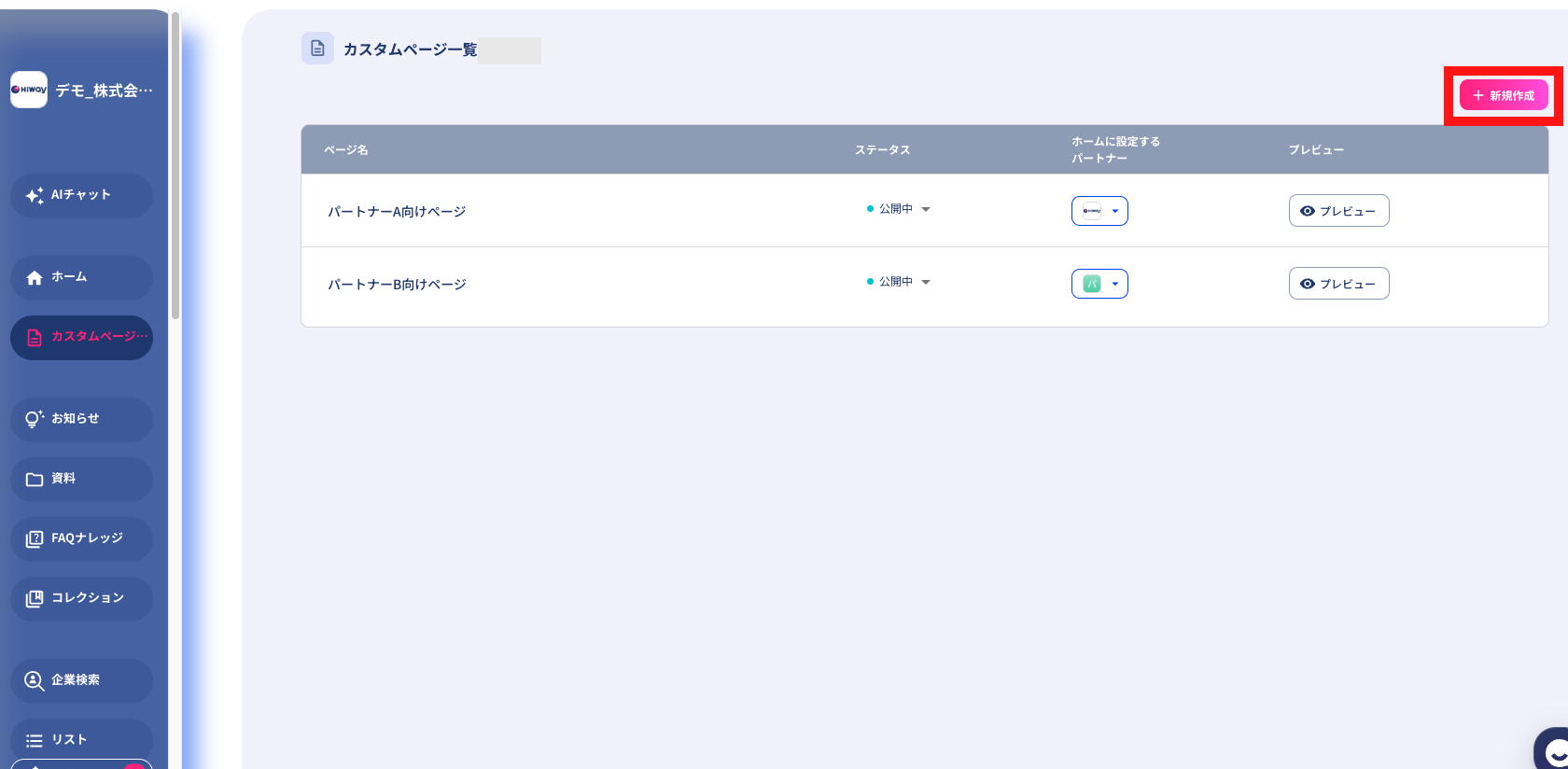 お知らせや資料・FAQなどのコンテンツを作成・管理し、パートナーへ配信します。