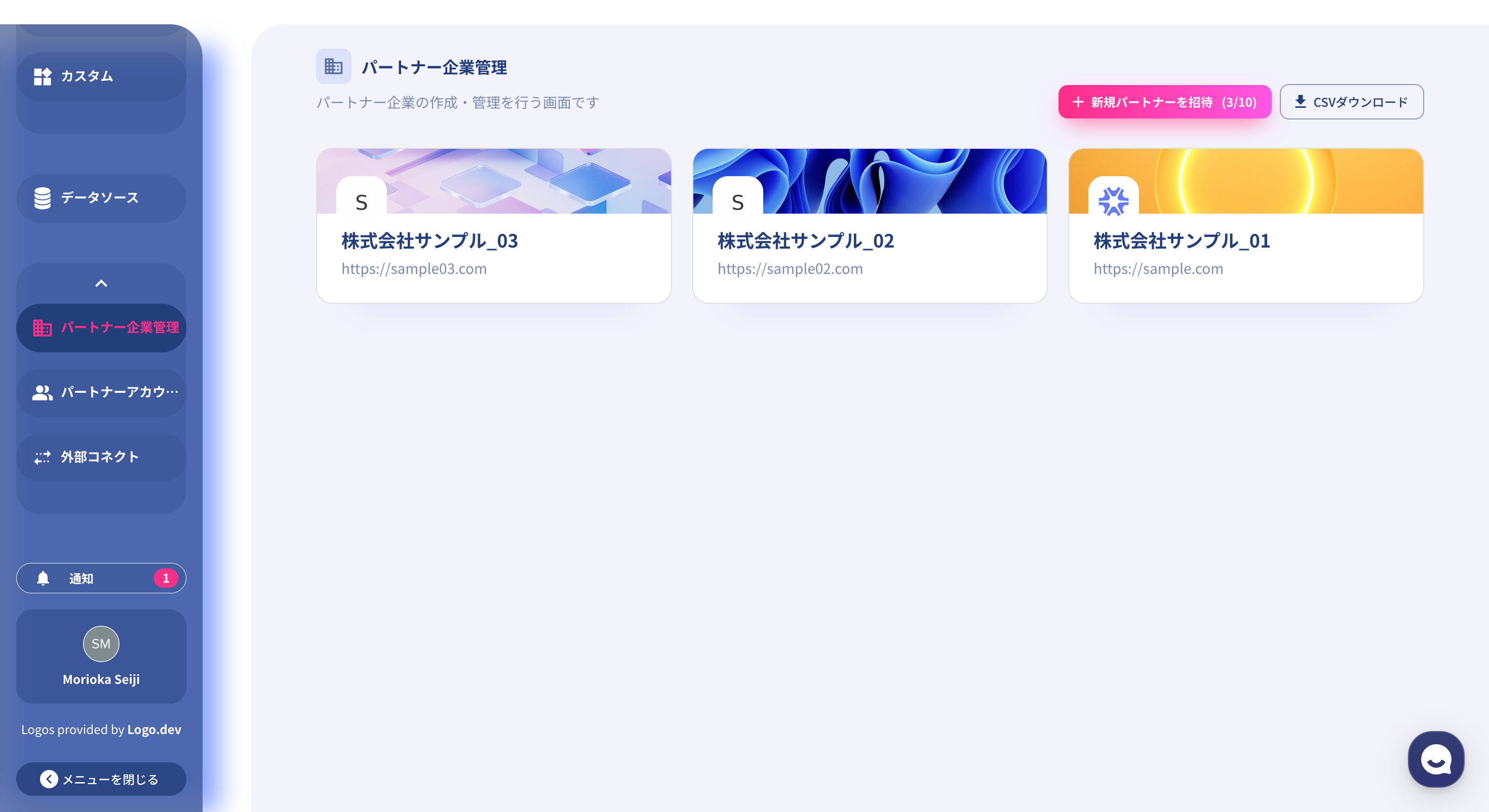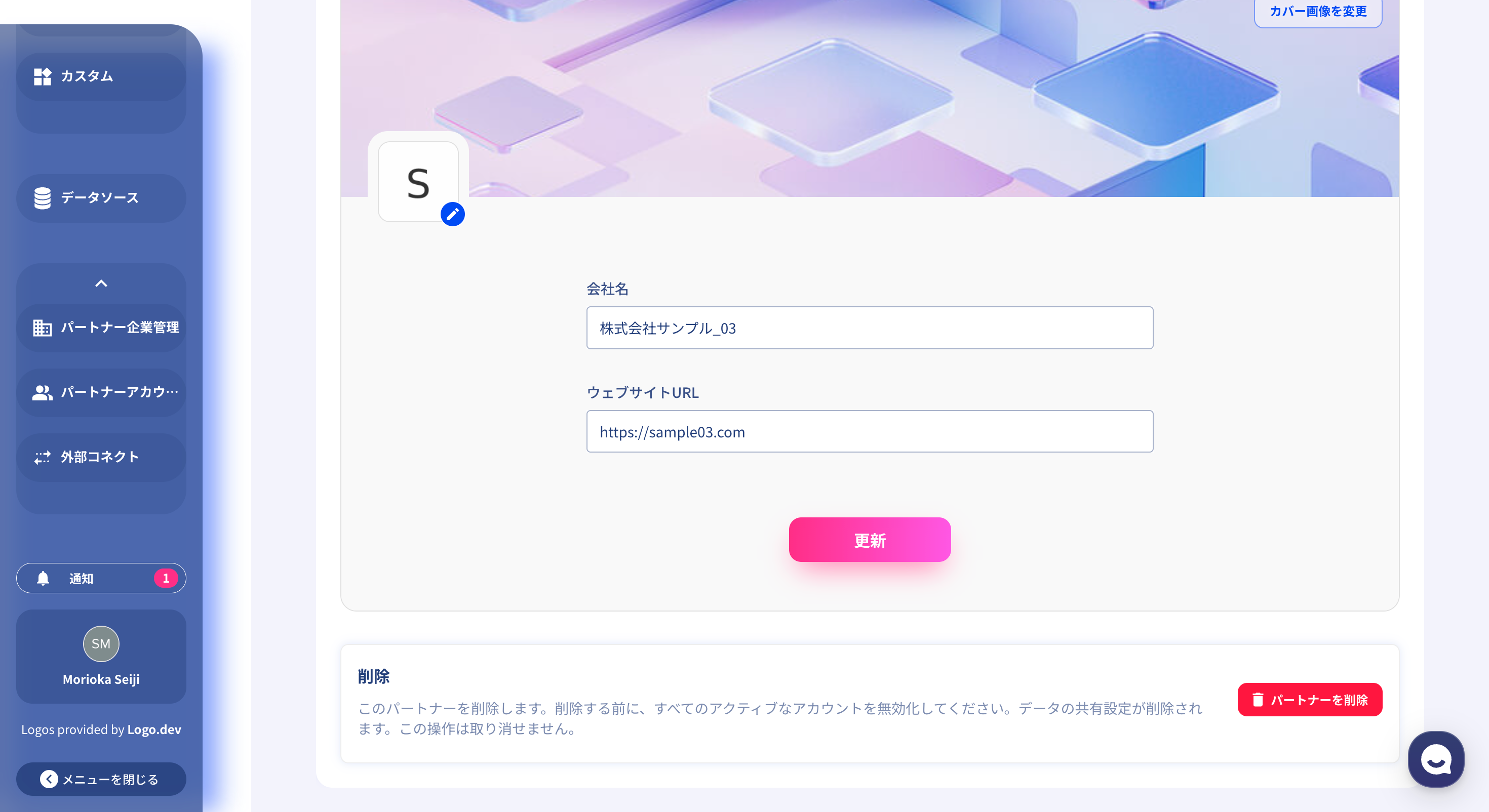 作成したサブワークスペースが不要になった場合、以下の手順で削除が可能です。パートナー企業管理 > 対象のサブワークスペースを選択画面下部にある「パートナーを削除」をクリックポップアップの注意書きを確認し、問題なければ「削除する」をクリック