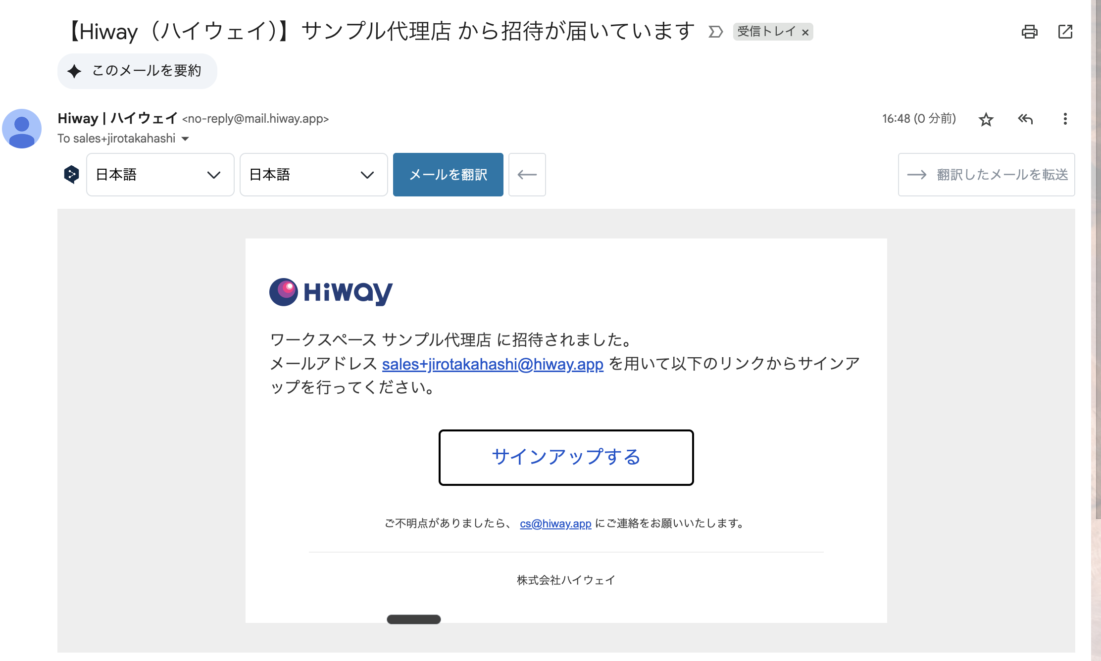 招待されたユーザーには、入力されたメールアドレス宛に招待メールが届きます。
