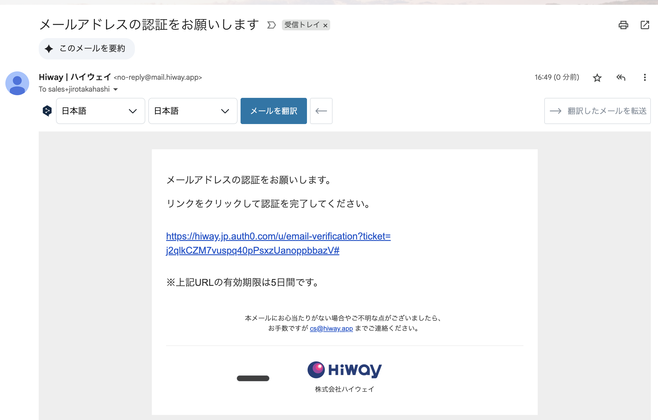 認証メールが届くので、メール内のリンクをクリックし登録が完了します。