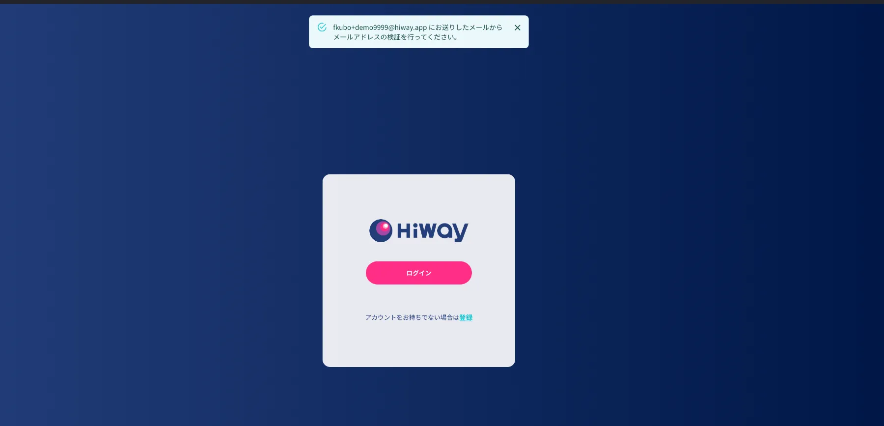 メールアドレスとパスワードを入力された方に、「メールアドレスの検証を行ってください」というメッセージが表示されます。