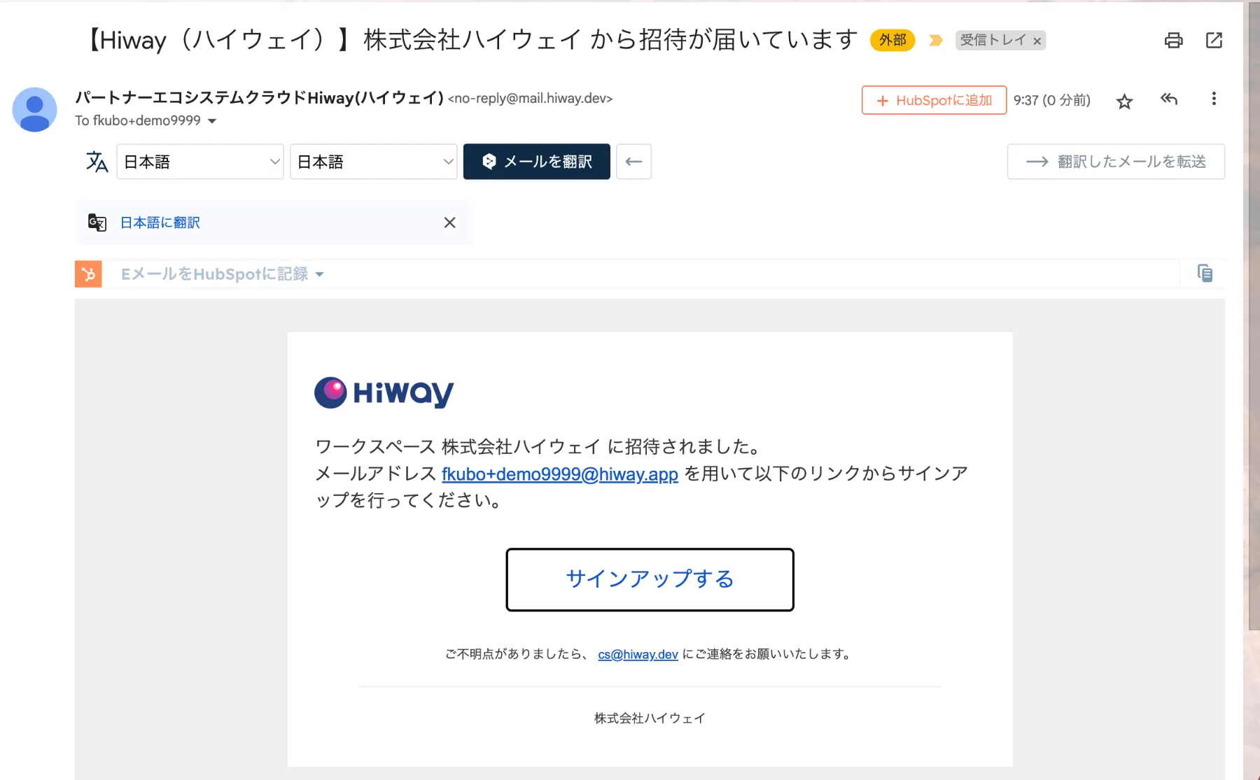 ハイウェイからシステム招待メールが届いていることを確認します。(※迷惑メール設定をご利用中の方は迷惑メールフォルダに振り分けられていないか、ご確認ください。)