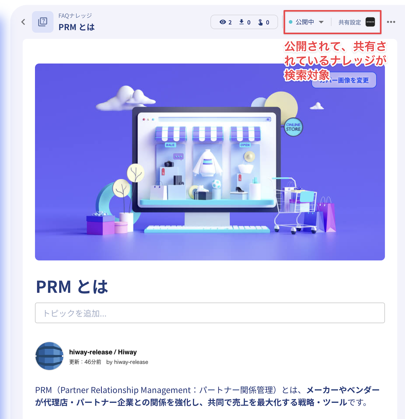 ナレッジは「公開」かつパートナー企業に「共有」することで、パートナー企業側のAIチャット検索結果に表示されます